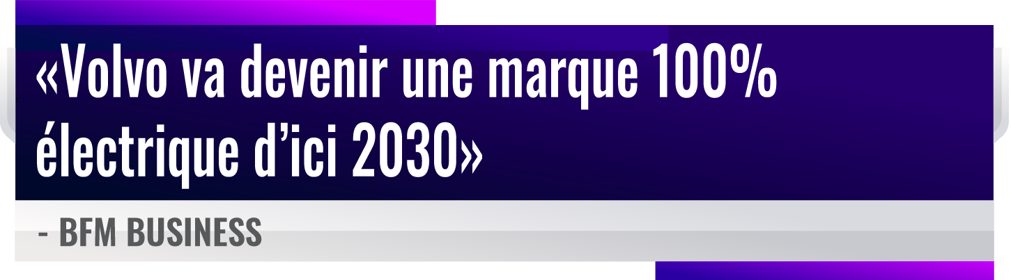 Après Alpine, Jaguar et Ford, Volvo a également annoncé son ambition du 100% électrique4 d’ici 2030 :